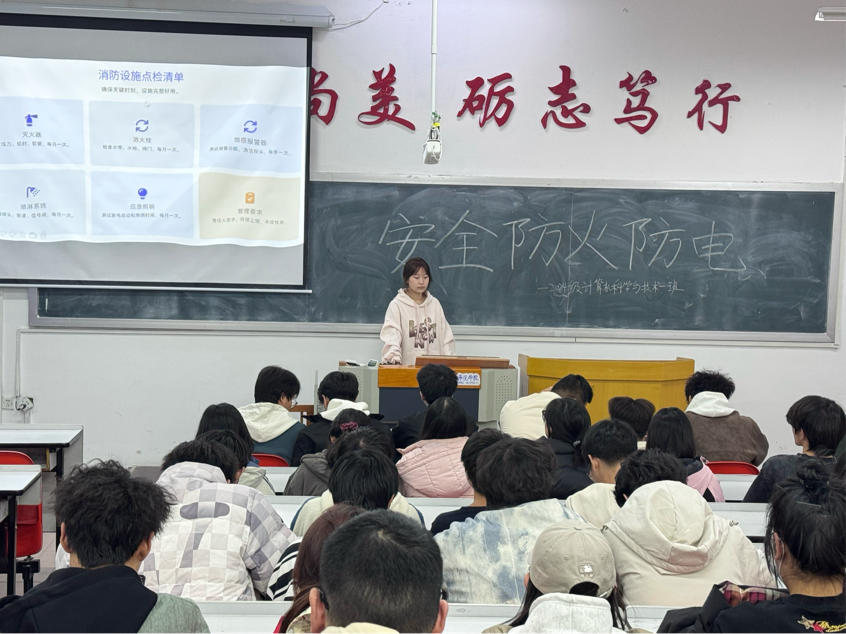 各班紧扣主题,结合校园生活实际与秋冬季节火灾高风险特点,开展形式多样的宣传教育活动。通过真实案例剖析、宿舍安全隐患排查、情景模拟演练及互动问答等形式,引导学生强化防火防灾意识,掌握基础防范技能,切实树立“识风险、会防范、能处置”的安全理念。