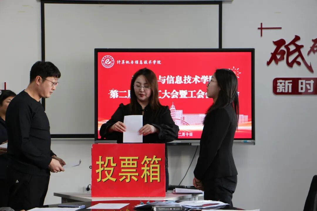 全体教职工依次审议通过《计算机与信息技术学院行政工作报告》《计算机与信息技术学院工会工作报告》《计算机与信息技术学院行政经费使用情况报告》《计算机与信息技术学院工会会费使用情况报告》等决议。