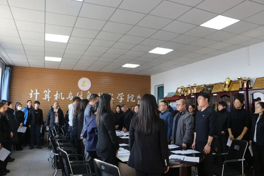 最后,全体起立奏唱校歌《神圣的使命》,大会执行主席陈君宣布牡丹江师范学院计算机与信息技术学院第二届“双代会”圆满闭幕。