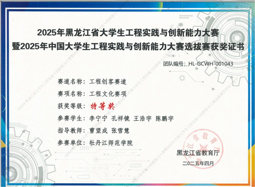 获黑龙江省高校教学成果二等奖1项