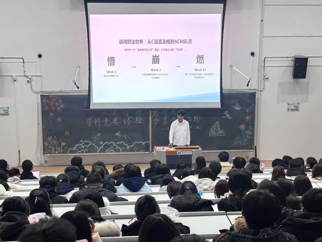 11月2日,我院于文科楼115开展第二期学科竞赛经验分享会,本期邀请到三位在程序设计赛事中斩获佳绩的学长学姐担任主讲人,从备赛策略、实战技巧到心态调整等方面倾囊相授,助力同学们明晰未来竞赛规划。分享会由学生会权益保障部(学习)部长陈恺祺主持。