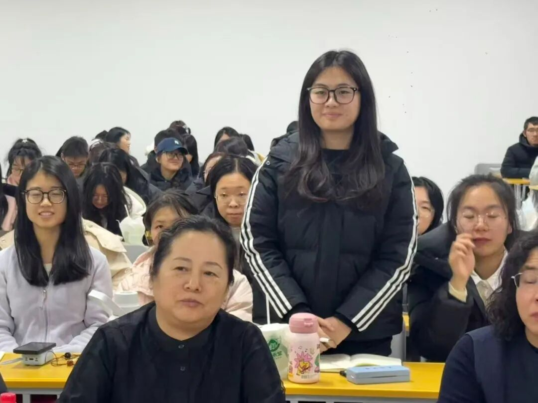 在同学们的热切期盼中,国赛获奖学子分享环节正式拉开帷幕。周子诗同学与张菽杭同学围绕自己的参赛项目,条理清晰地拆解了自己授课设计思路、知识传递技巧与备赛全流程,从选题构思到细节打磨,再从实战应变到心态调整。无论是授课中的知识传递,还是说课中的设计思路,都让同学们收获颇丰。