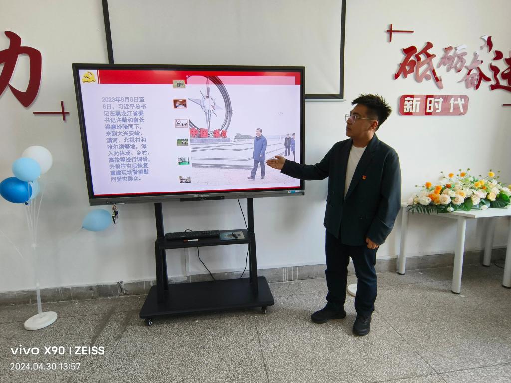 为深入学习贯彻习近平新时代中国特色社会主义思想,进一步体会习近平总书记视察黑龙江期间的重要讲话重要指示精神,巩固拓展主题教育成果,4月30日,计算机与信息技术学院于文科楼336承办了党建第一片区庆祝建党103周年暨党支部书记“身在最北方,心向党中央”党课大赛。计算机与信息技术学院、文学院、教育科学学院、自贸区学院四个学院党委书记、副书记及支部书记代表出席本次党课比赛现场并给与指导。